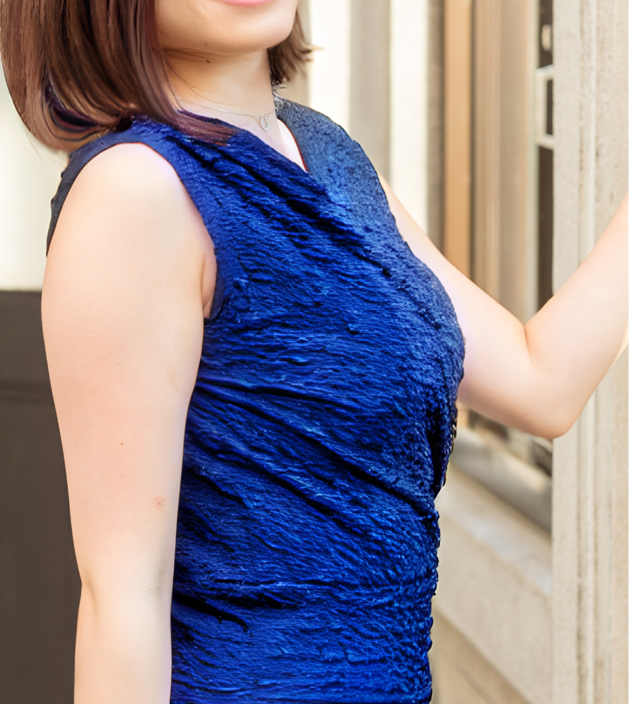 カウンセラー「ロイヤルブルーのワンピースがとてもお似合いですね」