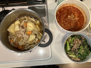 と、いうわけで。ご飯や汁物のみでほぼ作らなくていい家族の食卓が3回、