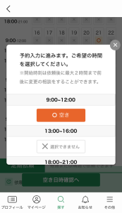 わたしが今回依頼した方も、午前中の枠は10時からお願いします、とのことでした(システム上の予約枠は午前中は9-12時)